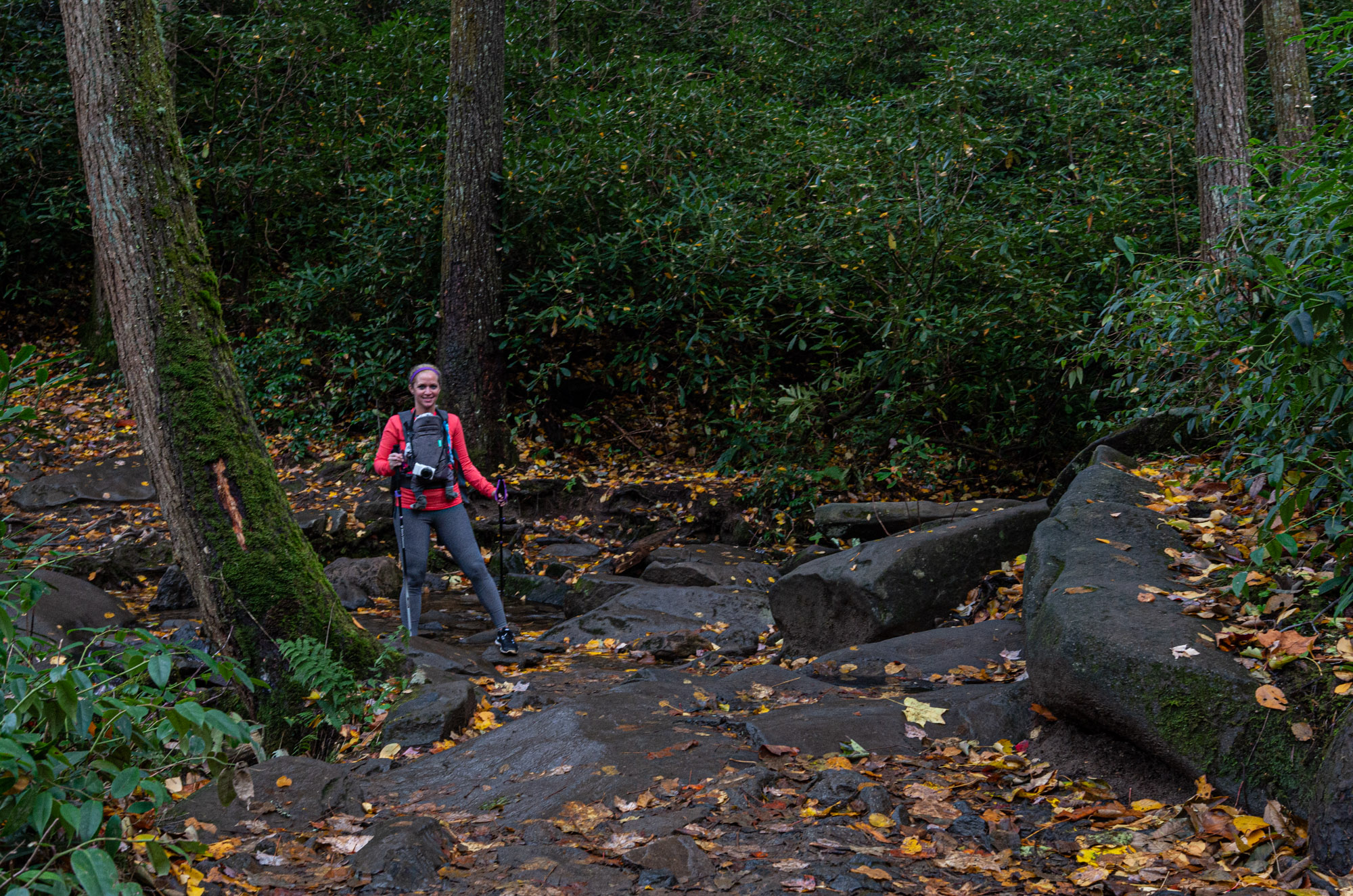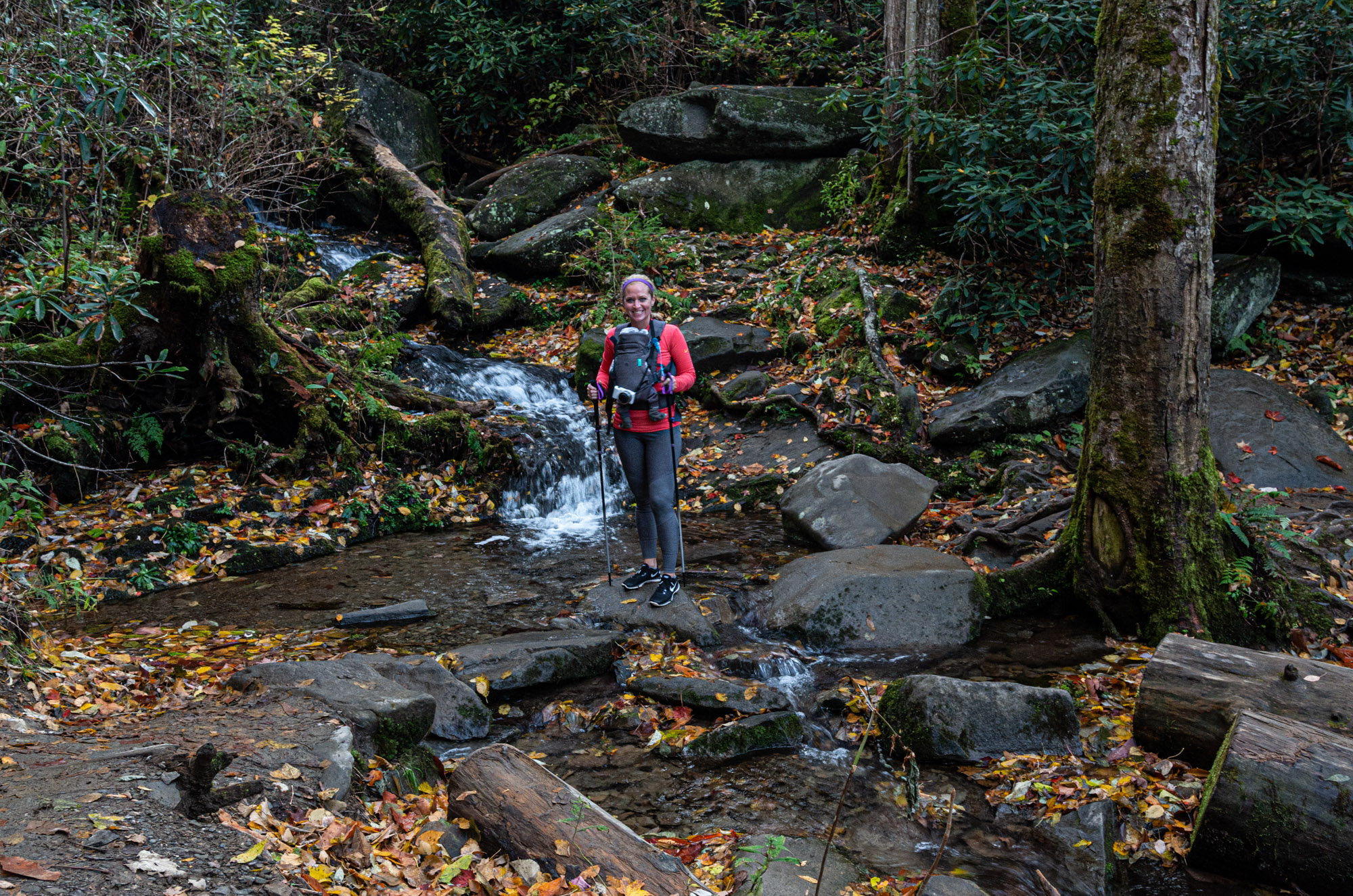 There are multiple thin stream crossings that require navigation over a few rocks.